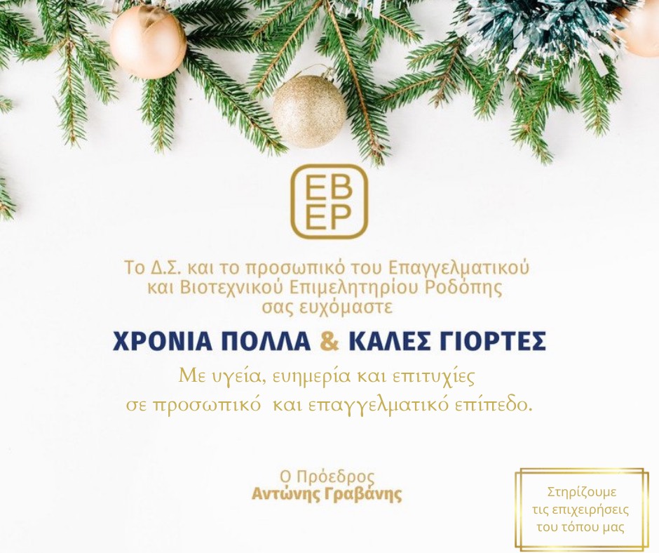 Ο Πρόεδρος, Αντώνης Γραβάνης, το Δ.Σ και το προσωπικό του Επαγγελματικού και Βιοτεχνικού Επιμελητηρίου Κομοτηνής, σας ευχόμαστε καλές γιορτές με υγεία, ελπίδα και ευημερία.