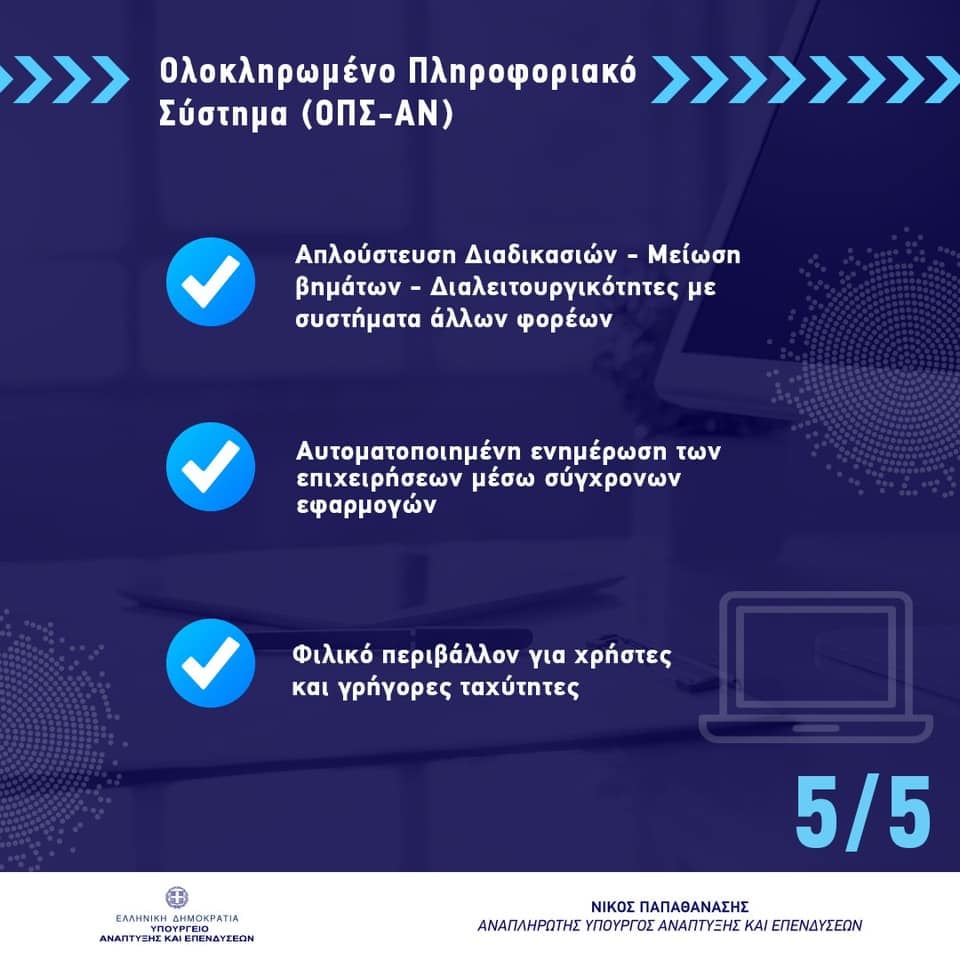 Προβλέπονται ακόμη διαλειτουργικότητες του νέου πληροφοριακού συστήματος με αντίστοιχα άλλων φορέων (ΑΑΔΕ, ΓΕΜΗ κ.λπ.), με λιγότερη γραφειοκρατία και αυτοματοποιημένη ενημέρωση των επενδυτών για την πορεία της αίτησής τους.